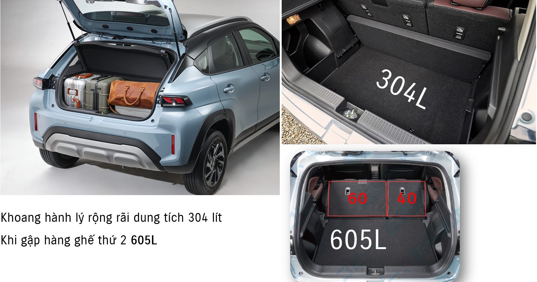 Fronx mang đến khoang hành lý rộng rãi, dung tích chứa lên đến 304 lít và có thể mở rộng lên đến 605 Lít (khi gập hàng ghế thứ 2) với miệng cốp thấp giúp việc sắp xếp hay lấy hành lý trở nên dễ dàng và tiện lợi hơn bao giờ hết.
