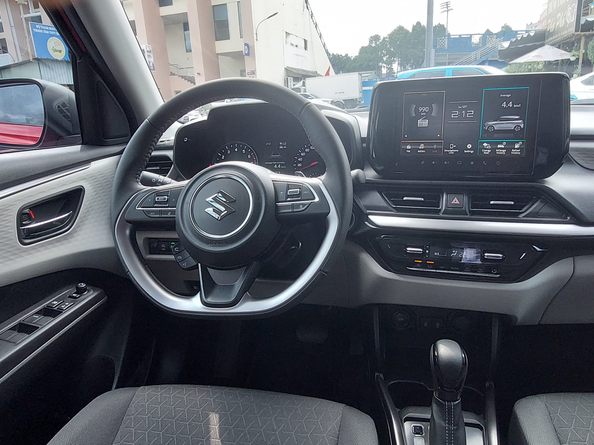 Vô lăng Suzuki Swift 2025 bọc da sang trọng có thiết kế D-cut, vừa thể thao vừa đảm bảo không gian ra vào thoải mái cho người lái. Trên vô lăng bọc da, có lẫy chuyển số và tích hợp đầy đủ phím điều khiển âm thanh, kiểm soát hành trình thích ứng ACC, đàm thoại rảnh tay, nút bấm hỗ trợ giữ làn đường LKA.
